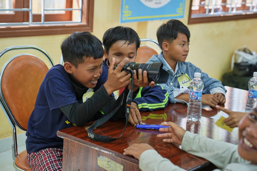 Students from Hong Thai Primary School practiced taking portrait photos of each other.